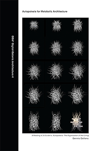 Looking through a filter of biological theory — the classic 1980 "Autopoiesis: The Organization of the Living" by Maturana & Varela — as it defines requirements for living, intelligent systems, DBA4: "Autopoiesis for Metabolic Architecture" asks questions of how AI, synthetic biology, and living technology can be merged with aesthetics, geometry, environment, and plant research in order to visually and systemically aid extrapolation of generative procedural rules, geometries, and genetic forms to theoretically consider intelligent, bioremedial architectures. As a critical reading of, and guide to Maturana & Varela's classic text, D•BA4 proposes autopoietic architecture hybridized through algorithmic plant simulation, extended cognition, living bacteria, plant metabolism, computational simulation, and living technology. The text discusses and illustrates an induced evolution in one emerging method — autopoietic-extended design — for metabolic architecture realized through software-simulated, plant-to-architecture morphology, metabolism, and biological intelligence. The resulting autopoietic generative architecture is manifested in theory, structures, surfaces, materials, and systems documented with drawings, renderings, and STL models.